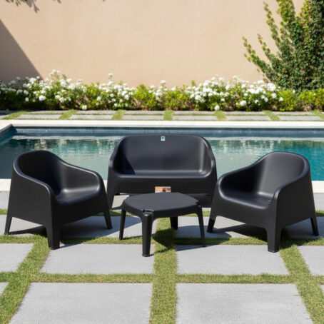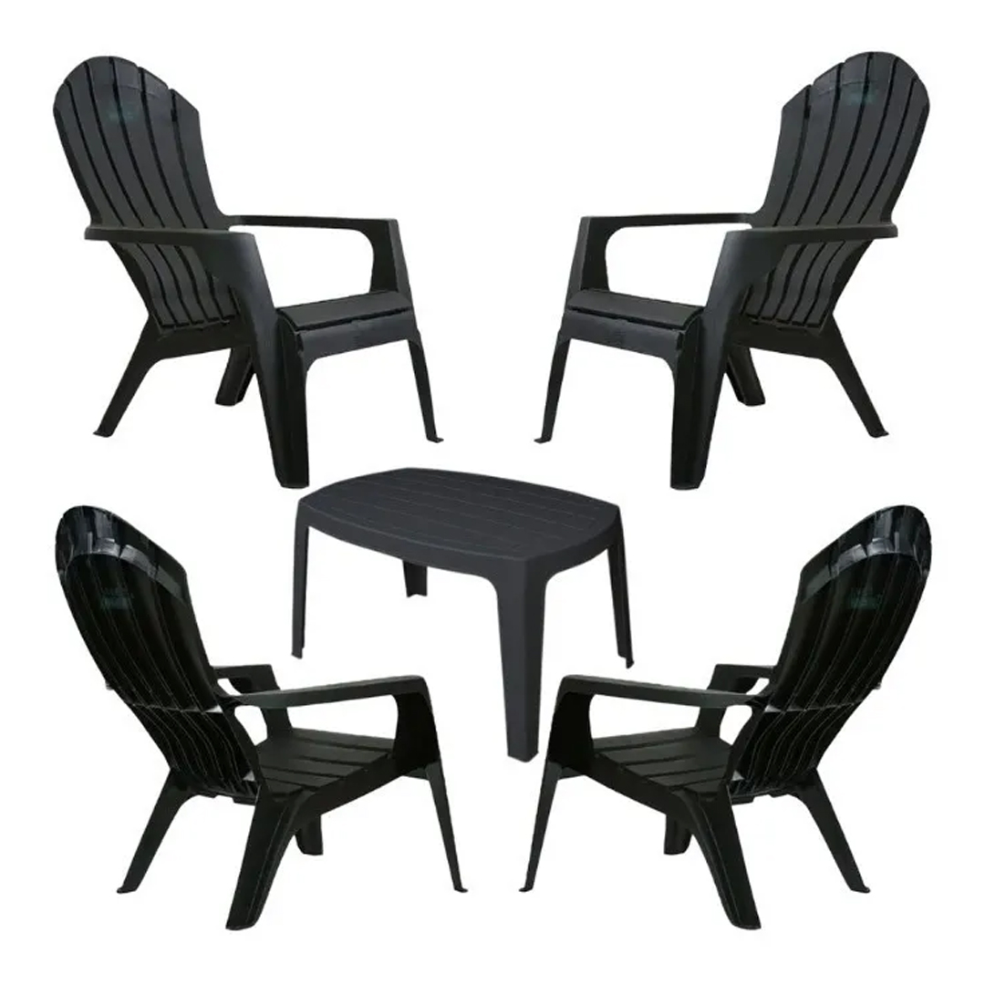 Combo 4 Sillones Miami + Mesita ratona Monoblock – Color Negro