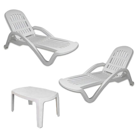 Combo 2 Reposeras + Mesa ratona – Color Blanco
