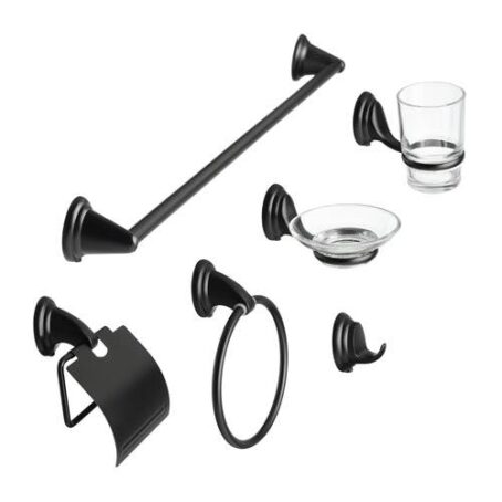 SET BAÑO 6 PIEZAS BASE REDONDA NEGRO