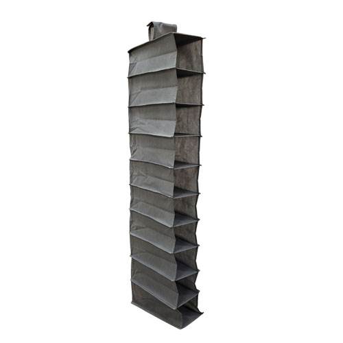 RACK BOTINERO COLGANTE 10 NIVELES 146X30X15CM TELA PVC GRIS
