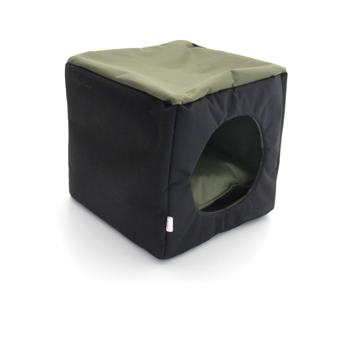 CUEVA ANTIDESGARRO PARA GATO (NEGRO Y VERDE) 30X30