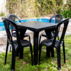 Combo 4 Silla Reina + Mesa Max Garden Cuadrada – Color Negro