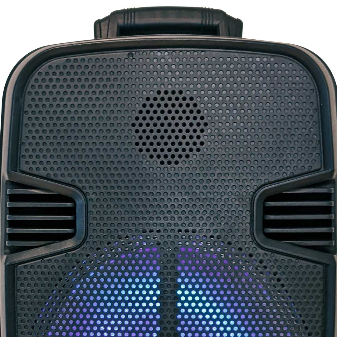 Siente el ritmo de tu música con este compacto y potente sistema de sonido multimedia. Diviértete con la función Karaoke, incluye un micrófono. Control de bajos, agudos, eco y volumen del micrófono. Controla la reproducción desde tu celular. Con la función TWS puedes conectar dos altavoces de forma inalámbrica y reproducir la música de la misma fuente al mismo tiempo, creando verdadero sonido estéreo.